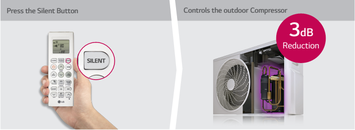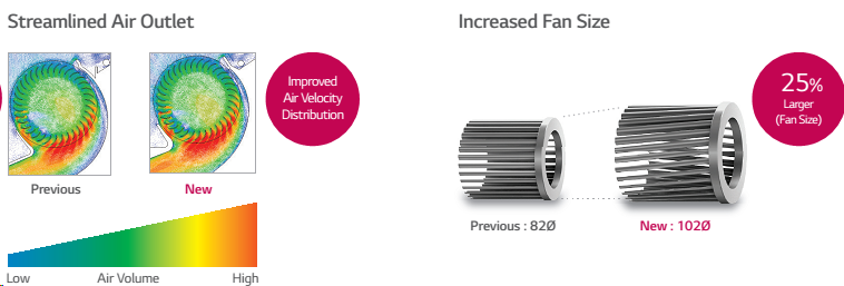 LG unikaalne siseosa ventilaator koostöös BLDC mootoriga võimaldab saavutada siseosa müratasemeks ülivaiksed 17 dB(A).
