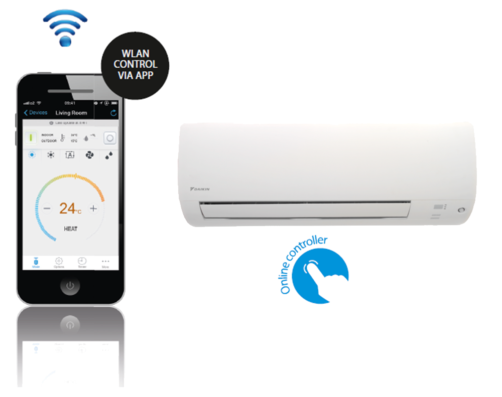 - Võimaldab kasutajal juhtida seadet läbi allalaaditava Daikin rakenduse (Daikin app)