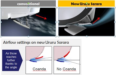 Daikin soojuspumbad kasutavad ühtlaseks õhu jaotamiseks kütmisel ja jahutamisel Coanda efekti. Coanda efekt on aerodünaamikast tundud nähtus, kus gaasid ja vedelikud liiguvad mööda läheduses olevaid pindu. Daikin soojuspumbad kasutavad seda omadust, et suunata õhu voolu mööda seinu ja lagesid ning ühtlustada sellega õhujaotust. Niimoodi luuakse mõnus sisekliima ning välistatakse ebameeldiv pealepuhumine ruumis viibivatele inimestele. Coanda efekti olemus kütterežiimis – kütterežiimi korral jõuab soe õhk seinani, kulgeb seda mööda ja liigub üle põranda. Teid hoitakse soojas jalatallast pealaeni, ilma et otsest sooja õhuvoogu ja ebameeldivat pealepuhumistunnet tunda oleks.