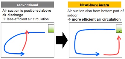 Unikaalne dubleeritud (ülalt ja alt) õhu sissevõtt on lahendus, mis oluliselt suurendab Ururu Sarara efektiivsusenäitajaid võrreldes tavapäraste soojuspumpadega.