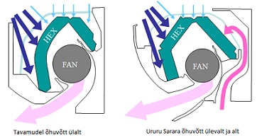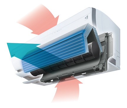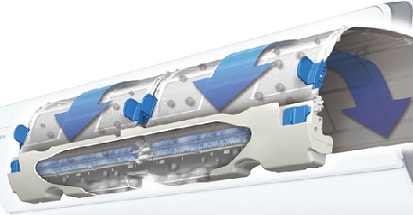Ruumi õhk siseneb siseseadmesse nii ülevalt, kui alt võimaldades nii saavutada kiiremalt soovitud ruumitemperatuuri.